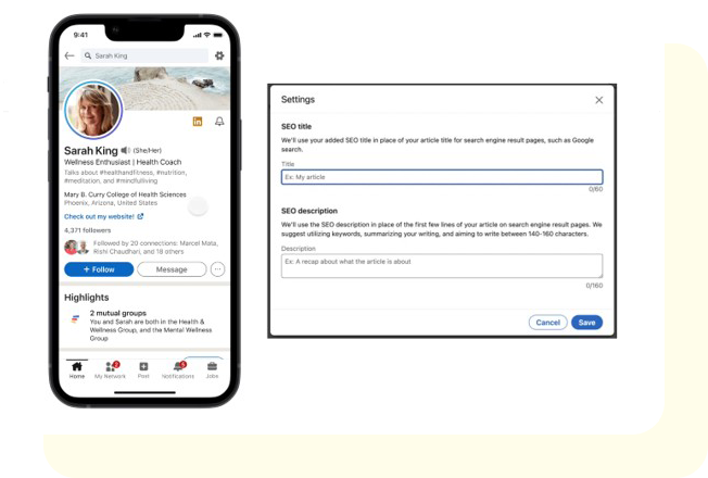 LinkedIn vient de lancer de nouveaux outils destinés à optimiser la description et le title de vos articles afin de toucher davantage de personnes à la recherche de sujets spécifiques.